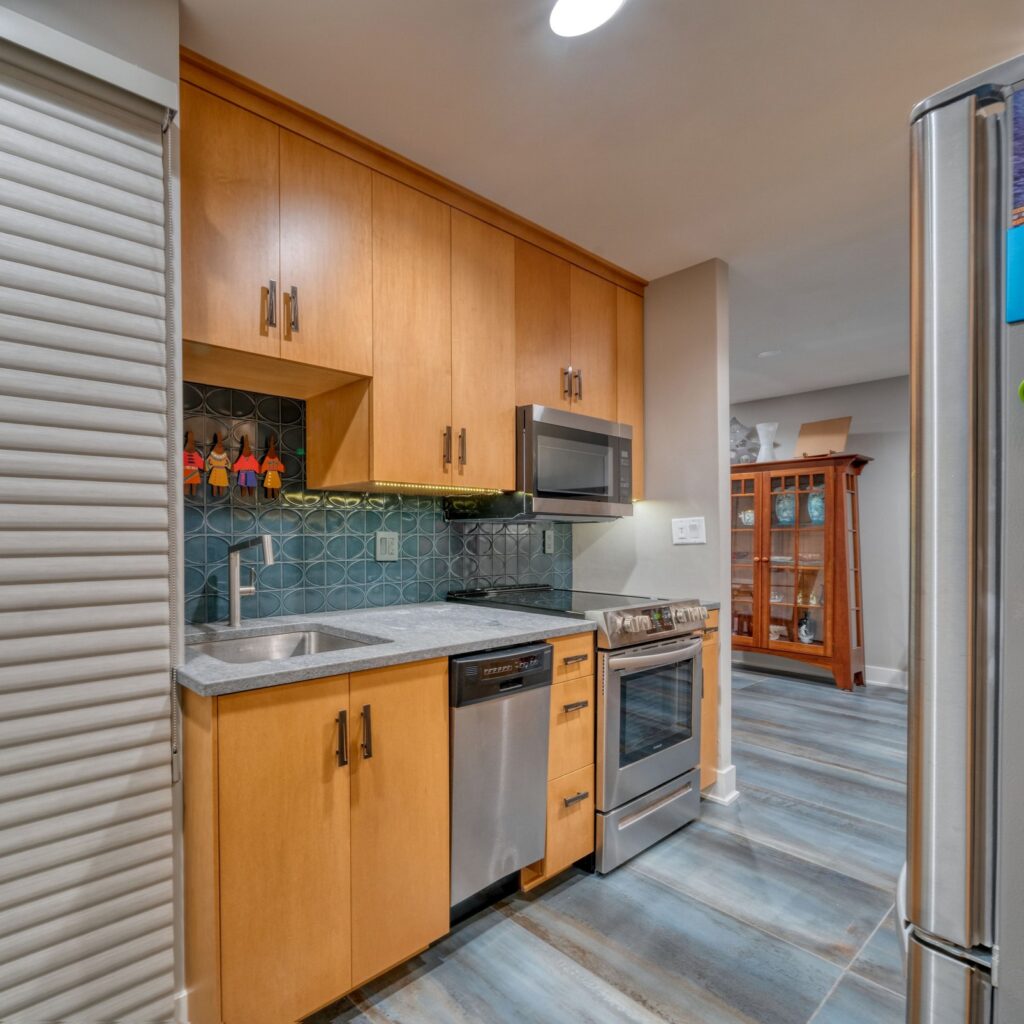Design Corner – If you have a small kitchen, one way to get more storage is to take cabinetry to the ceiling.