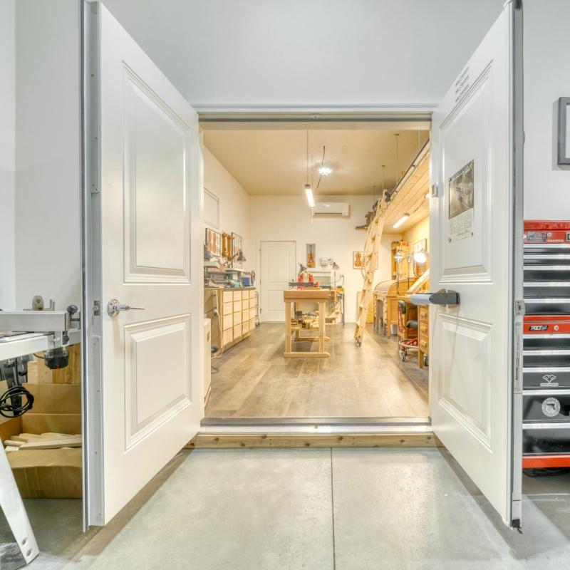 Besides building the wall, framing included tapered floor joists to level out the floor. Insulation was included in the new wall, and drywall for both sides. Access was created with double doors to make moving furniture and equipment slick as snow. The room also has its own mini split system to keep the workspace climatized.
